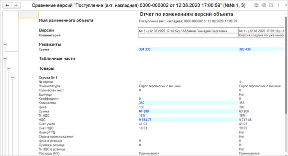 После установки соответствующего флажка для, в программе станет доступна возможность просматривать внесенные изменения объекта, в какое время и каким пользователем было выполнено данное редактирование, сравнивать версии объектов между собой и восстанавливать, при необходимости, предыдущую версию объекта.