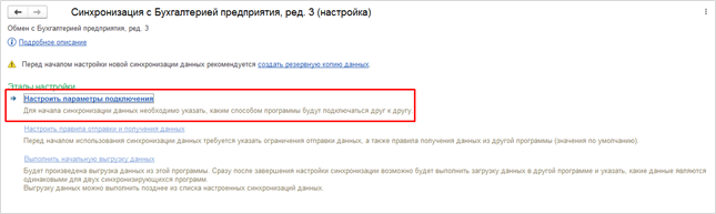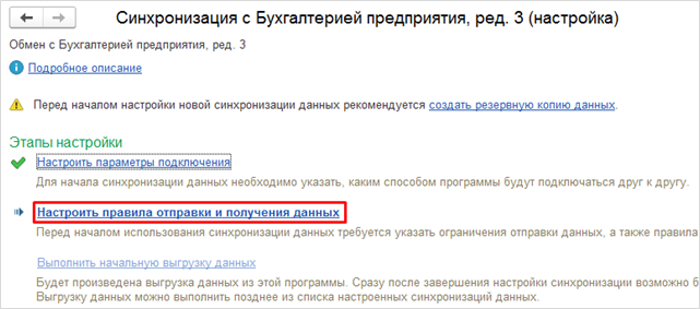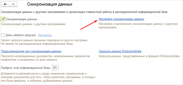 Далее для настройки синхронизации данных следует перейти по ссылке «Настройки синхронизации данных».