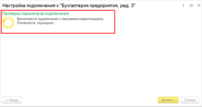Некоторое время программа будет выполнять проверку подключения. После успешной проверки параметров подключения проверьте корректность префиксов и снова нажмите на кнопку "Далее".