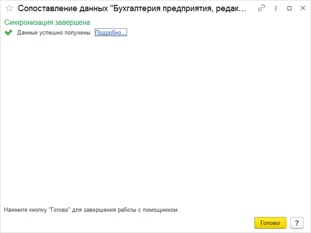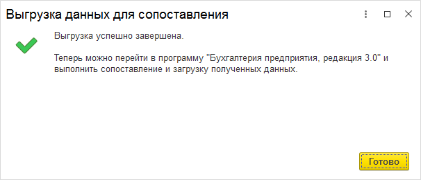 В результате успешной выгрузки данных программа предложит перейти в бухгалтерскую программу для выполнения сопоставления и загрузки полученных данных.