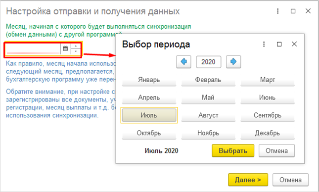 После выполненных действий приступаем к завершению настройки синхронизации со стороны Бухгалтерии и запускаем последний этап, на котором осуществляется выгрузка данных для программы Зарплата и управление персоналом.