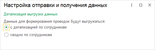 Следующим шагом необходимо указать, как будут выгружаться данные по зарплате: «С детализацией по сотрудникам» или «Сводно по сотрудникам».
