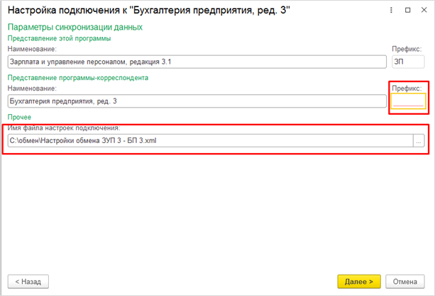 Если же в одной из баз уже настроен обмен с какой-либо другой программой, то следует оставить тот префикс, который уже был задан ранее, а в той базе, где префикса нет, присвоить новый.