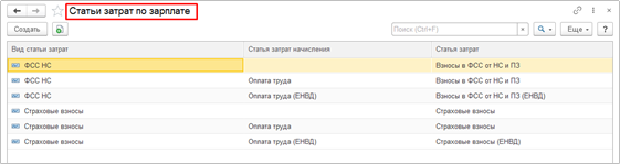 Также для корректного формирования проводок нужно проверить соответствия статей затрат в пункте меню «Статьи затрат по зарплате».