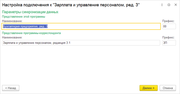 Если же в одной из баз уже настроен обмен с какой-либо другой программой, то следует оставить тот префикс, который уже был задан ранее, а в той базе, где префикса нет, присвоить новый.