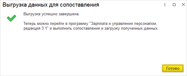 В результате успешной выгрузки данных программа предложит перейти в бухгалтерскую программу для выполнения сопоставления и загрузки полученных данных.