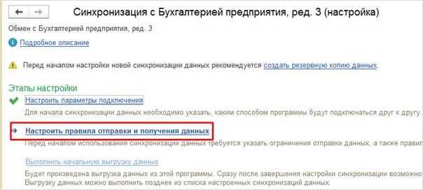 Далее для настройки синхронизации данных следует перейти по ссылке «Настройки синхронизации данных».