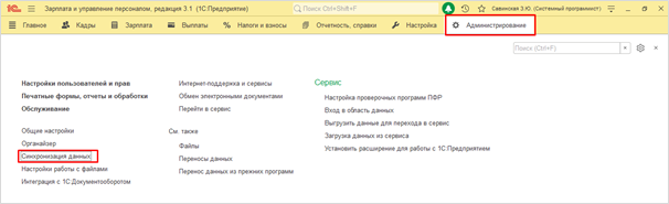 Такие настройки надо установить в двух программах. Настройку в данном примере начинаем со стороны программы «Зарплата и управление персоналом».