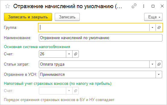 Для автоматического заполнения колонки «Способ отражения» требуется установить настройки. В программе «Зарплата и управление персоналом» способ отражения представляет собой только наименование, счет учета нужно будет задать в программе «Бухгалтерия предприятия». В программе «Зарплата и управление персоналом» поле «Способ отражения» можно задать в карточке организации, на закладке «Учетная политика и другие настройки» - «Бухучет и выплата зарплаты»