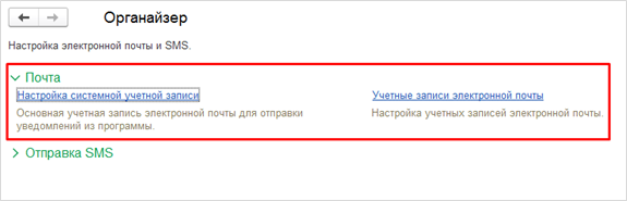 Многие организации обмениваются важными документами, используя учетную запись электронной почты. Чтобы упростить работу пользователей, в программе 1С была добавлена возможность отправки документов через электронную почту, так как потребность в обмене документов очень возросла. Для того, чтобы отправлять письма непосредственно из 1С, необходимо, в первую очередь, создать учетную запись электронной почты. Сделать это нужно из раздела «Администрирование» - «Органайзер», выбрать «Почту», далее перейти в «Настройку системной учетной записи» или «Учетные записи электронной почты».