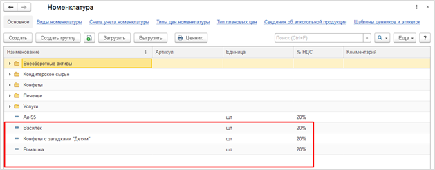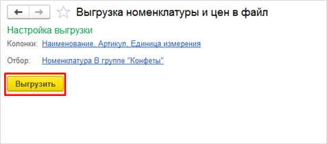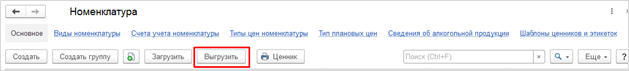 Также в программе 1С Бухгалтерия есть возможность и выгружать справочник «Номенклатура» по кнопке «Выгрузить».