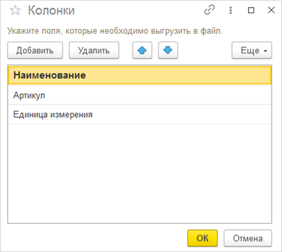 В этом случае открывается окно «Выгрузка номенклатуры и цен в файл», в котором можно задать определенные колонки и отборы для выгрузки. Нажав на кнопку «Выгрузить», необходимо выбрать путь, куда требуется сохранить файл и задать наименование.