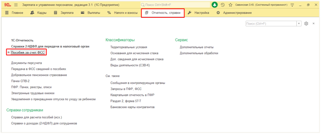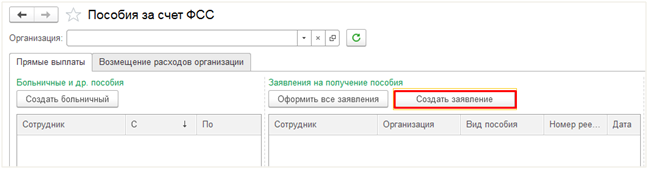 В первую очередь сформируем документ "Единовременное пособие за счет ФСС" из раздела «Зарплата», выбираем «Все начисления» — «Создать».