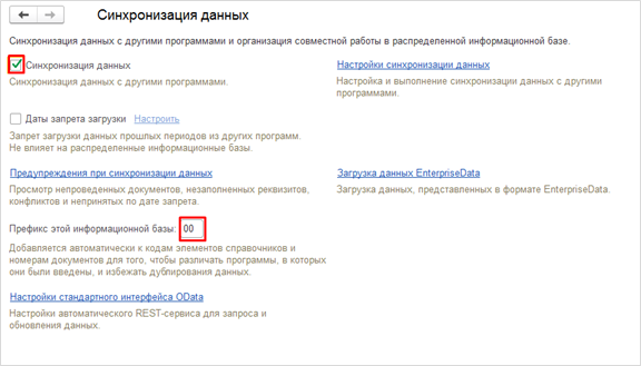 Если же в одной из баз уже настроен обмен с какой-либо другой программой, то следует оставить тот префикс, который уже был задан ранее, а в той базе, где префикса нет, присвоить новый.