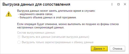 Следующим этапом будет начальная выгрузка данных в программу «Управление торговлей».