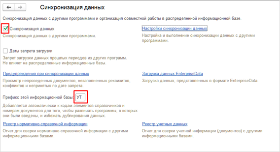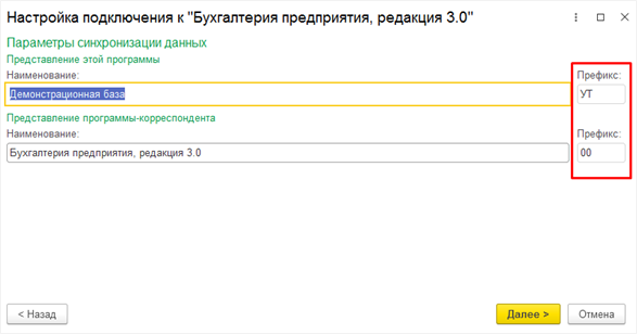 Если же в одной из баз уже настроен обмен с какой-либо другой программой, то следует оставить тот префикс, который уже был задан ранее, а в той базе, где префикса нет, присвоить новый.