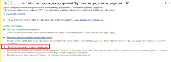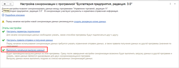 Следующим этапом будет начальная выгрузка данных в программу «Управление торговлей».