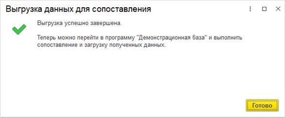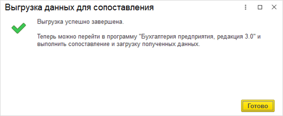 В результате успешной выгрузки данных программа предложит перейти в бухгалтерскую программу для выполнения сопоставления и загрузки полученных данных.