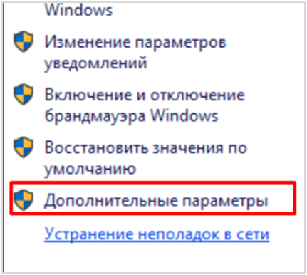 Если в результате появилась ошибка «Не удается получить доступ к сайту» или аналогичное сообщение, то необходимо перейти к настройкам брандмауэра, для этого требуется вернуться к компьютеру, где ранее осуществлялась установка «Apache»и открыть «Панель управления» - «Система и безопасность» - «Брандмауэр Windows» и в левой части экрана выбрать «Дополнительные параметры».