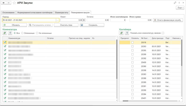Все приведенные АРМы являются шаблонными, соответственно заполнение полей таких как контрагенты, номенклатура и другое - примерное, все представленные колонки предусмотрены к заполнению, но зависят от наличия данных в программе.