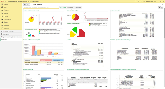 Специалисты нашей компании помогут в реализации данного функционала в вашей программе, мы создаем АРМы для различных категорий должностей – от линейных менеджеров до руководителей.Ниже представлены примеры типового АРМ в программе "Управление нашей фирмой".