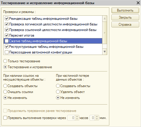 · Реиндексация таблиц информационной базы позволяет перестроить индексы для таблиц и повысить производительность информационной базы.