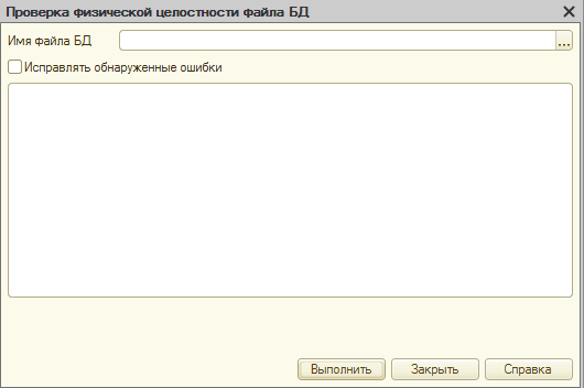 В результате выполненных действий открылась форма «Проверка физической целостности файла БД».