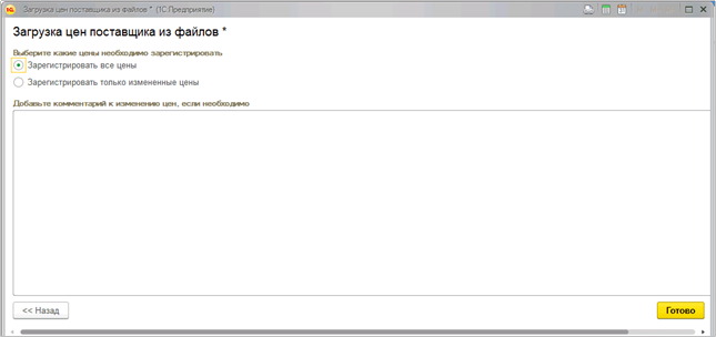 Следующее нажатие на кнопку «Далее» открывает перед нами окно для дальнейшего выбора действий с загружаемыми ценами: