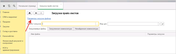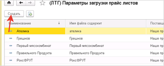 Перед загрузкой прайс-листа необходимо задать параметры его загрузки. Для этого необходимо перейти по ссылке «Параметры загрузки файлов» и создать новый элемент.