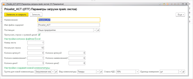 Рассмотрим процесс создания параметров загрузки файла на примере файла с наименованием Pricelist_АСТ ателика.xls.