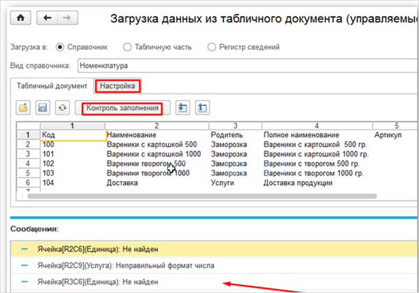 В случае если имеются ошибки, их необходимо устранить, для этого требуется зайти на закладку «Настройка».