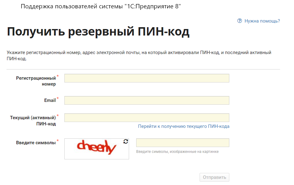 Если вы израсходовали все пинкоды из комплекта поставки, вы можете Получить резервный ПИН-код самостоятельно через ваш личный кабинет на портале 1С